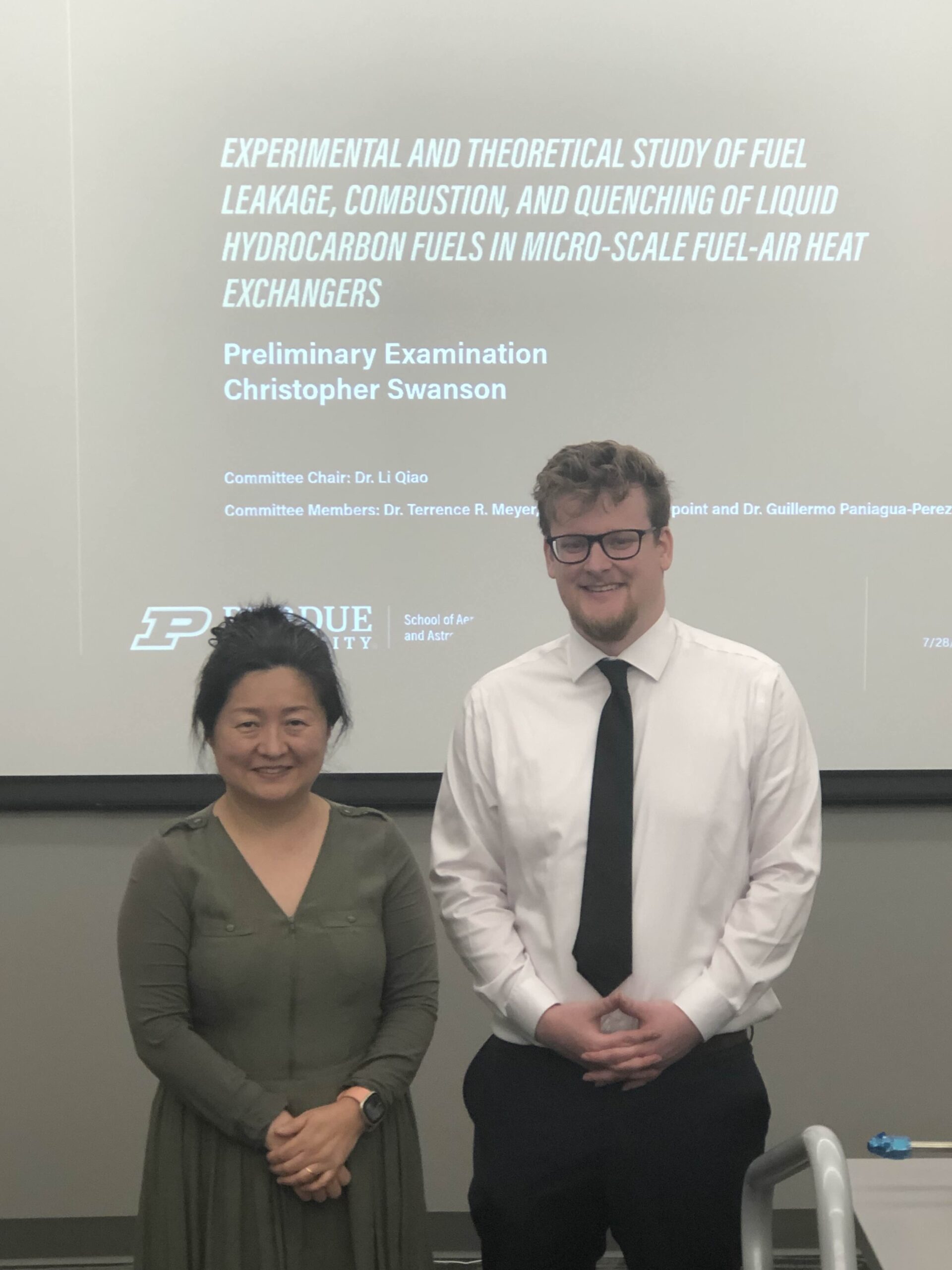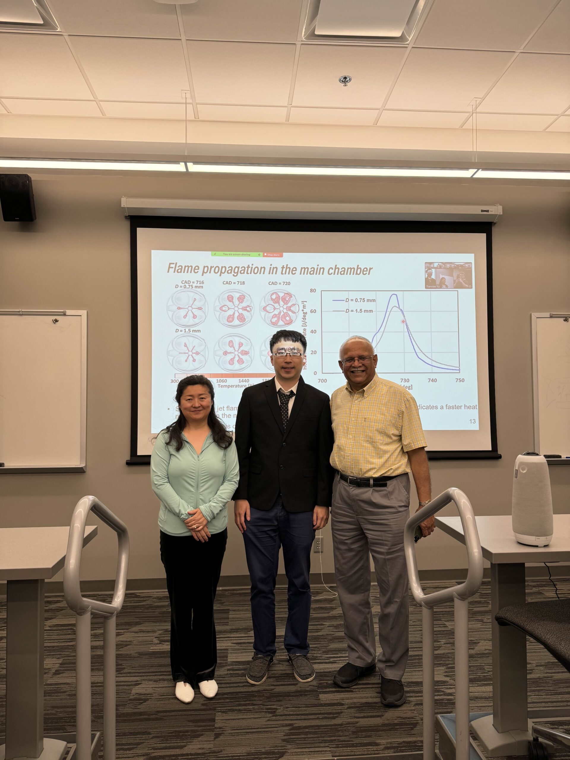 Graduation of PhD students (Dr Yu, Prof. Qiao and Dr Swanson) Graduation of Dr Swanson Graduation of Dr Chakraborty Dr Qiao received Fulbright fellowship to conduct research at Tohoku University, Japan Graduation of Dr Lee Lau and Farmer working on the Hydrogen drone Thesis Defense of Dr Yu (Prof. Qiao and Dr Swanson)) Engine control room Thesis Defense of Dr Yu (Prof. Qiao, Dr Yu and Prof. Gore) Graduation of Dr Lee